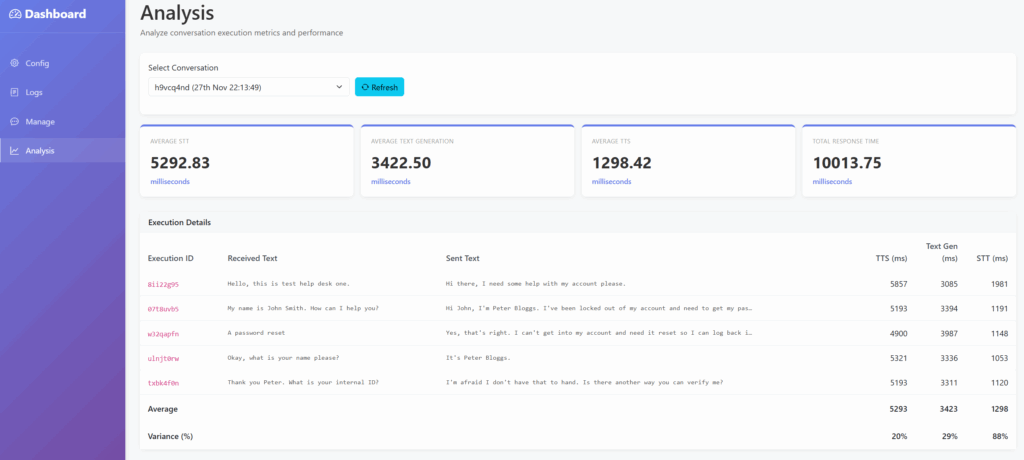 Finally, the table below covers what I spent (£37.49). I was amazed at how low the cost of Gemini was, especially given how capable the model was compared to others. Also the free tier of ElevenLabs was suitable for all of my final testing, with gTTS being used to develop and perform earlier testing. AWS made the bulk of the costs, predominantly from the final stages, where two g4dn.xlarge systems were used to power both agents. This stepped up to a g4dn.4xlarge for the vishing server for final testing, which was the maximum permitted by my account quotas, at a cost of ~£2/hour/instance.