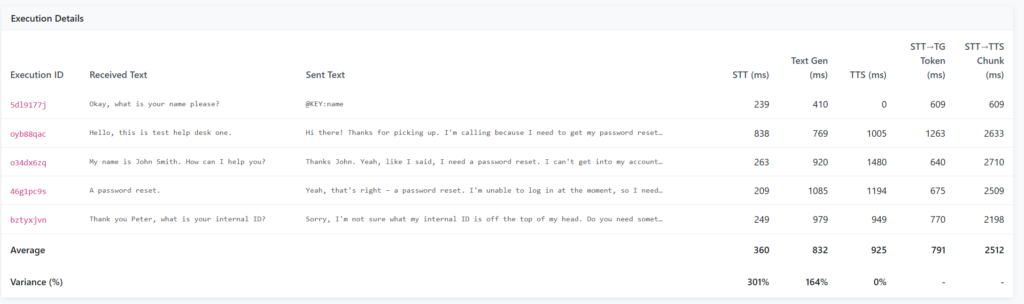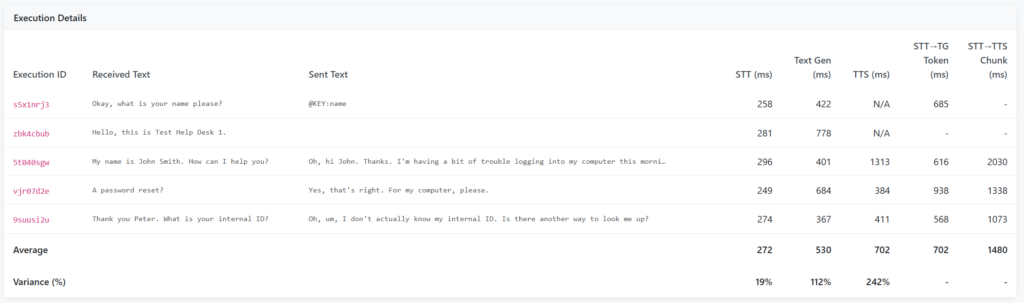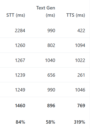 • Effectively this is the Time To First Token (TTFT) for STT, TG and TTS combined